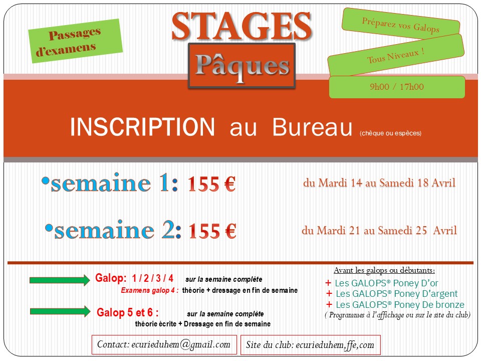 Info : Dans la mesure du possible, merci de prévenir de toute absence par email : ecurieduhem@gmail.com